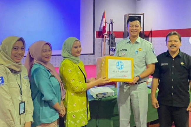 INDRAMAYU – Pada hari Selasa, Tanggal 17 September 2024 Kepala Jasa Raharja Perwakilan Indramayu, Donny Irvanny diwakili oleh Pelaksana Administrasi Samsat Haurgeulis, Aditya Syukron Mahardhika beserta Katimker Dapen P3DW Indramayu-II Haurgeulis, Nandang Juhaeni Permana melangsungkan kegiatan Sosialisasi PPKL (Pengajar Peduli Keselamatan Lalu Lintas) sekaligus Roadshow Edukasi Samsat Digital, Kios-K dan Salira bertempat di SMK N 1 Anjatan, Kab. Indramayu. Kegiatan yang dihadiri oleh guru, staf pengajar dan perwakilan siswa-siswi SMK N 1 Anjatan ini bertujuan untuk edukasi kepada peserta terkait peran dan fungsi Jasa Raharja, menanamkan pemahaman berlalu lintas, tertib dalam berkendara dan selalu membawa kelengkapan saat berkendara yaitu SIM yang berlaku dan STNK (PKB & SWDKLLJ) yang masih berlaku masa pajaknya.