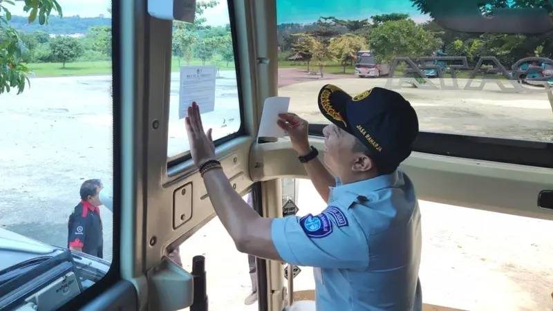 Pastikan Keselamatan Angkutan Umum Jasa Raharja Cabang Purwakarta dan Satlantas Polres Purwakarta pasang stiker Practicial Guidence Perbesar
